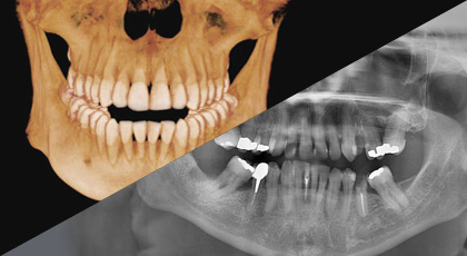 一个绿色智能的扫描不仅可以给你一份CT图像,还可以有一张全景效果的影像。这意味着患者不需要进行两次X光扫描,CT和全景图像还能同时在一个界面上显示。